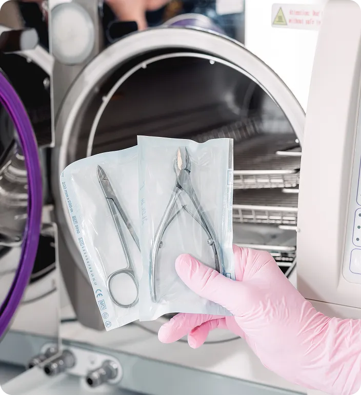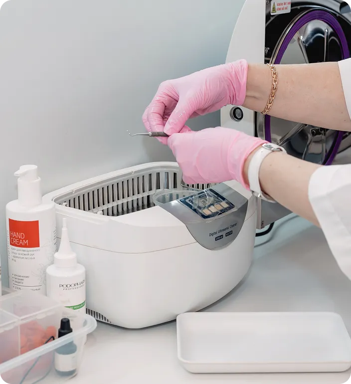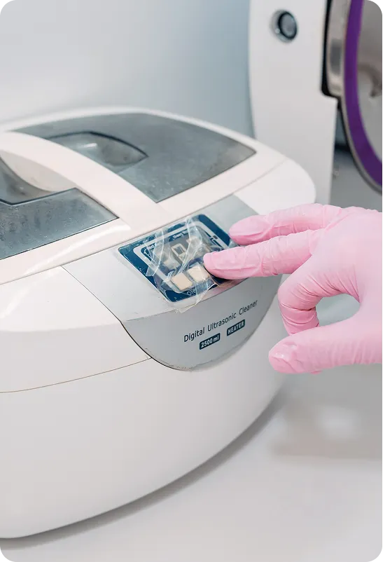 Автоклав класса В, ультразвуковая мойка и строгие протоколы обработки — безопасность на уровне хирургии.